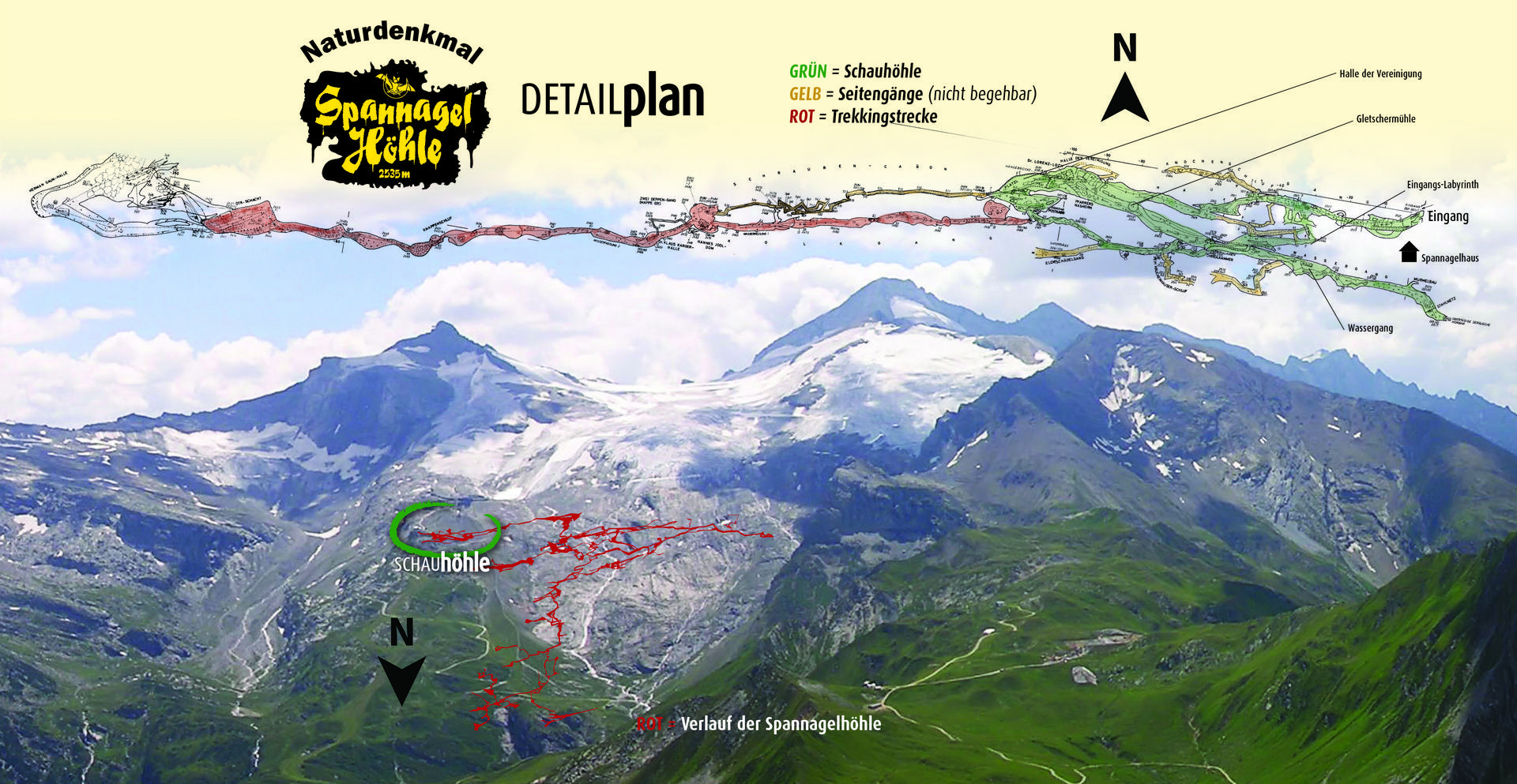 Mit der vermessenen Länge von ca. 13 km gilt die Spannagelhöhle als größte Felshöhle der Zentralalpen, wovon rund 500 Meter in Eingangsnähe bei der Schauhöhlenführung besichtigt werden können.