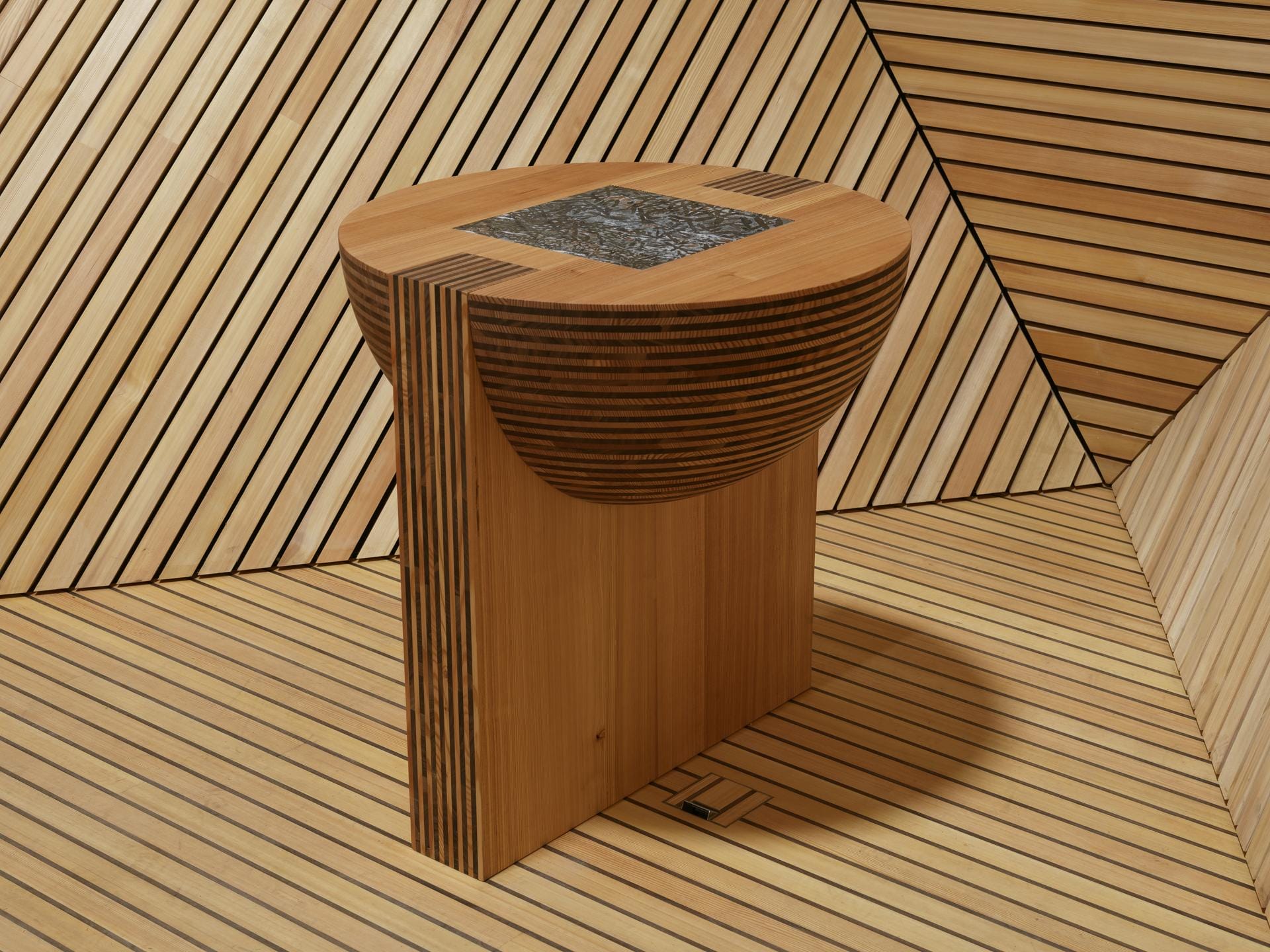Seen purely technically it was all about building this geometrical structure out of twelve equal-sized panels at this altitude. However, we were also thinking about a light wood construction inside as a contrast to the hard Corten steel which is harsh and wind and rain repellent. A soft core with a hard shell you might say. Like a nut. It was about playing with these two emotions. Seemingly impenetrable from the outside. But once you are inside you discover a sweet, soft fruit.