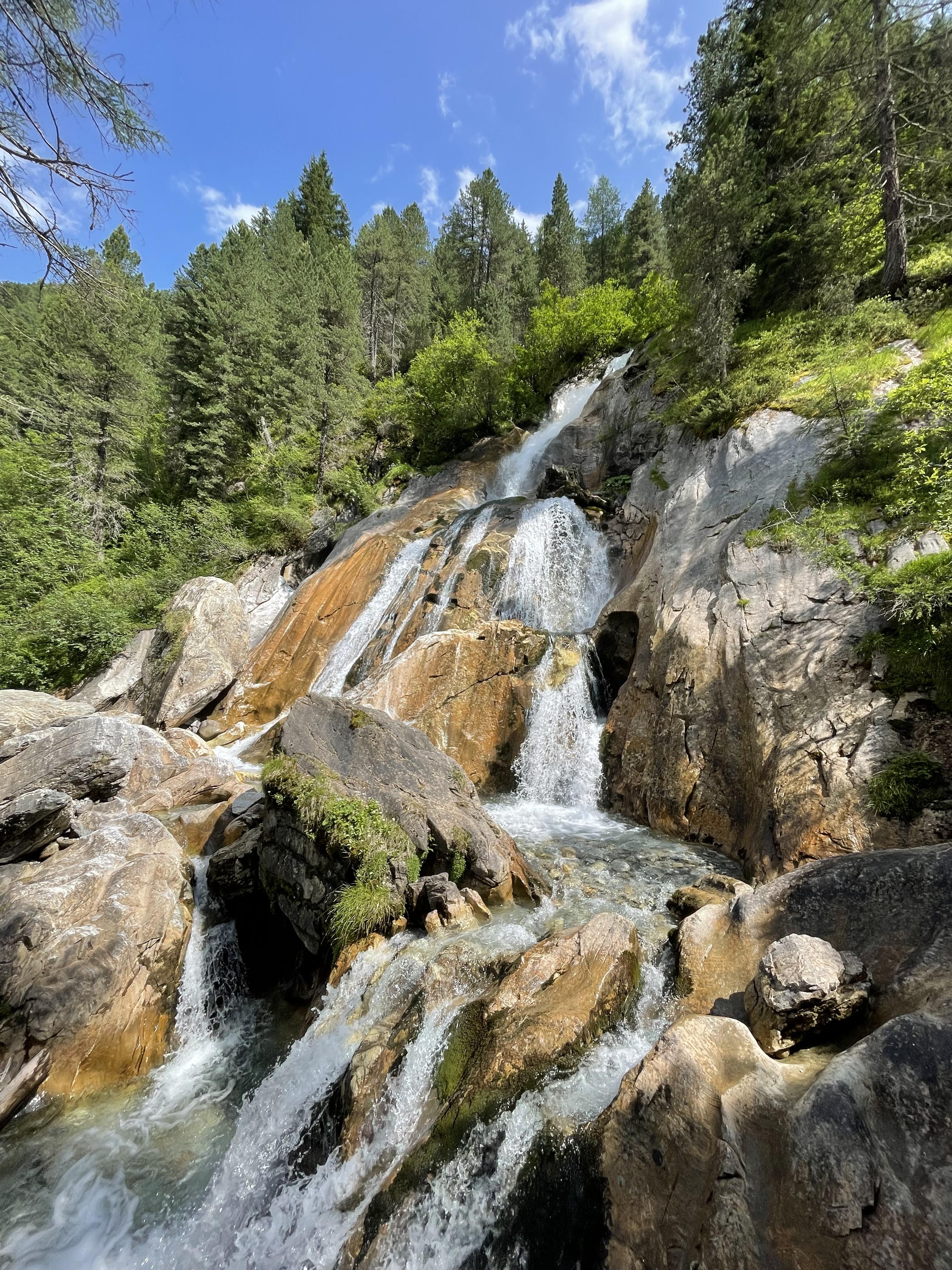 This stunning mountain hike starts at the Tuxer Fernerhaus (2,660 m). After a short descent via trail no. 526 you will reach an alpine pasture crisscrossed by glacial streams. Nestled between waterfalls and mountainstreams, the route continues downhill in the direction of „Waldeben“. See the Waterfall Trail description for the connecting route to the valley.