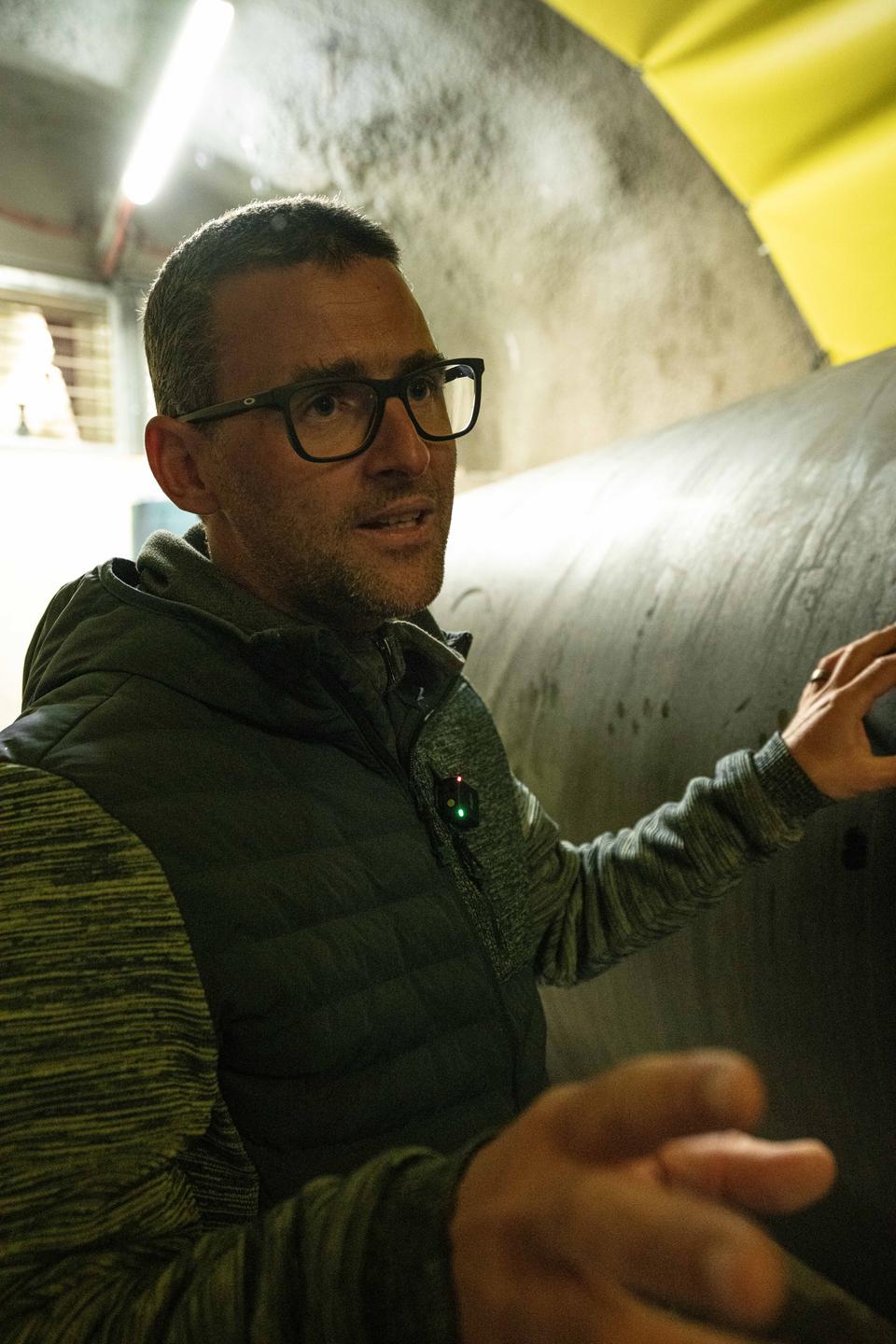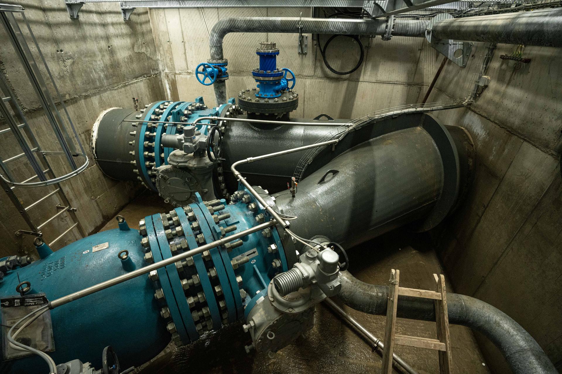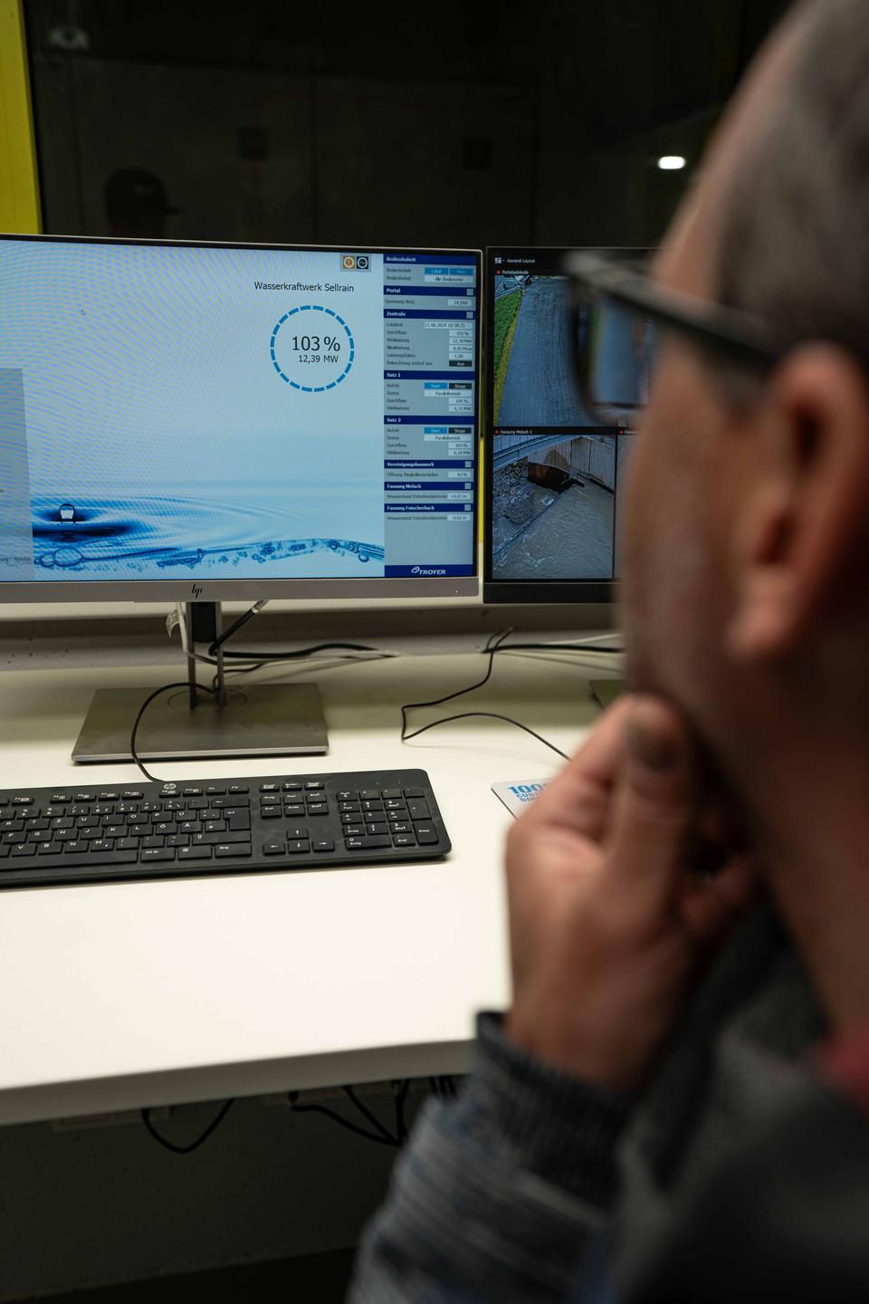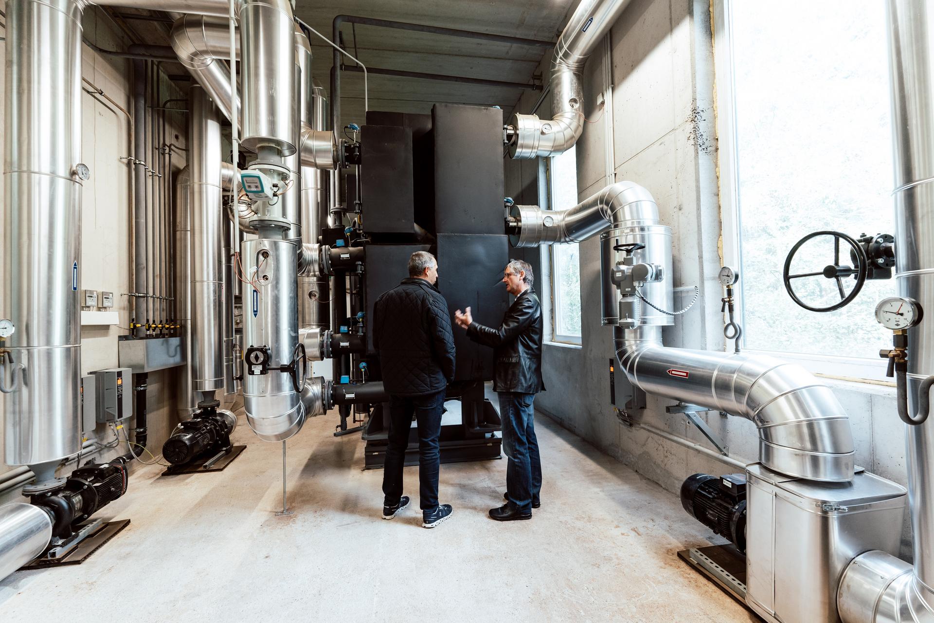 Reden wir über die Wasserkraft am Beispiel des Kraftwerkes Sellrain. Das 2023 fertiggestellte Bauwerk ist ein durchaus besonderes Kraftwerk. Die Turbinen werden nämlich nicht nur von einer Wehranlage gespeist, sondern von zwei. Die beiden Wehranlagen befinden sich an der Melach und am Fotscherbach. Dort wird das Wasser zuerst gereinigt und darauf in einzelne Druckrohleitungen geführt. Anschließend treffen sich diese Leitungen und vereinen sich zu einer großen, kilometerlangen Druckrohleitung, welche die zwei Turbinen schlussendlich mit ihrem „Rohstoff“ versorgt. „Insgesamt reden wir von mehr als 9 km Leitungen“, weiß Manuel Hujara, Betriebsleiter der Anlage. Er führt uns durch das Kraftwerk und erklärt uns im Detail, wie das mit der Energieproduktion im Kraftwerk Sellrain funktioniert. Mit schwer vorstellbaren 38 Bar Druck kommt das Wasser bei den Turbinen an. Zum Vergleich: in einem Fahrradreifen befinden sich zwischen zwei und drei Bar Druck. In der Turbine wird das sogenannte Laufrad von vier Einzeldüsen angestrahlt und somit angetrieben. Das Wasser wird im Anschluss wieder zurück in die Melach geleitet und steht dem Tal so weiterhin zur Verfügung. Das Kraftwerk läuft seit Inbetriebnahme durchgehend und hat eine aktuelle Wirkleistung von 12,4 Megawatt. Auf das Jahr hochgerechnet liefert die Anlage bilanziell genug Energie, um ca. 15.000 Haushalte mit erneuerbarem Strom zu versorgen.