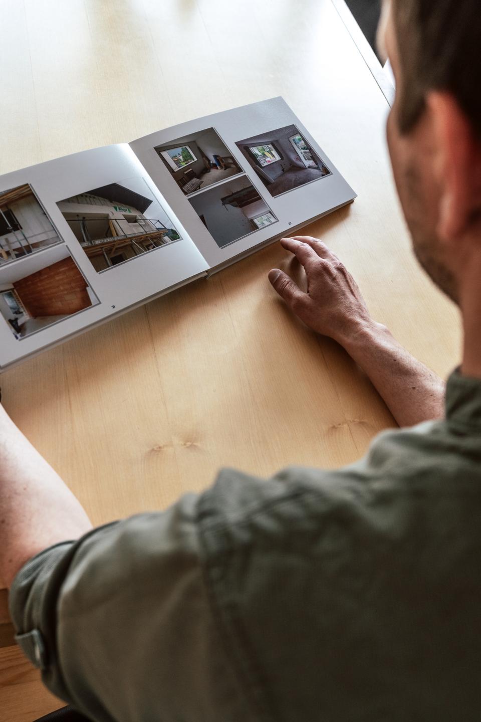 Zurück zum Anfang. Thomas‘ Vater hat das Haus Anfang der 70er-Jahre gebaut. Damals war geplant, dort einzuziehen, doch hat er in dieser Zeit Thomas‘ Mutter kennengelernt, die eben auch gerade Haus gebaut hat. Da das Haus der Mutter zuerst fertig war und generell auch wenig Geld vorhanden war, stand das Haus, um das es nun geht, lange als Rohbau herum. Über Jahre hat es der Vater dann aber in viel Eigenarbeit, meist am Wochenende, fertiggestellt. Auch damals hat er sich schon, mit den Mitteln der damaligen Zeit, viele Gedanken zum Thema Energieeffizienz gemacht und viel recherchiert. Es sollten gebrannte Ziegel verwendet werden, ein Nachtspeicherofen verbaut werden und so weiter. Auch wenn sich technisch einiges getan hat – es entstand eine solide Basis, auf der Thomas wortwörtlich aufbauen konnte.