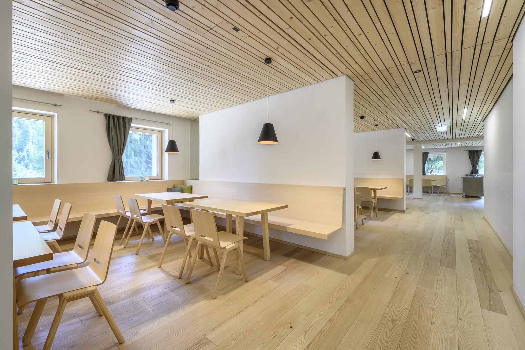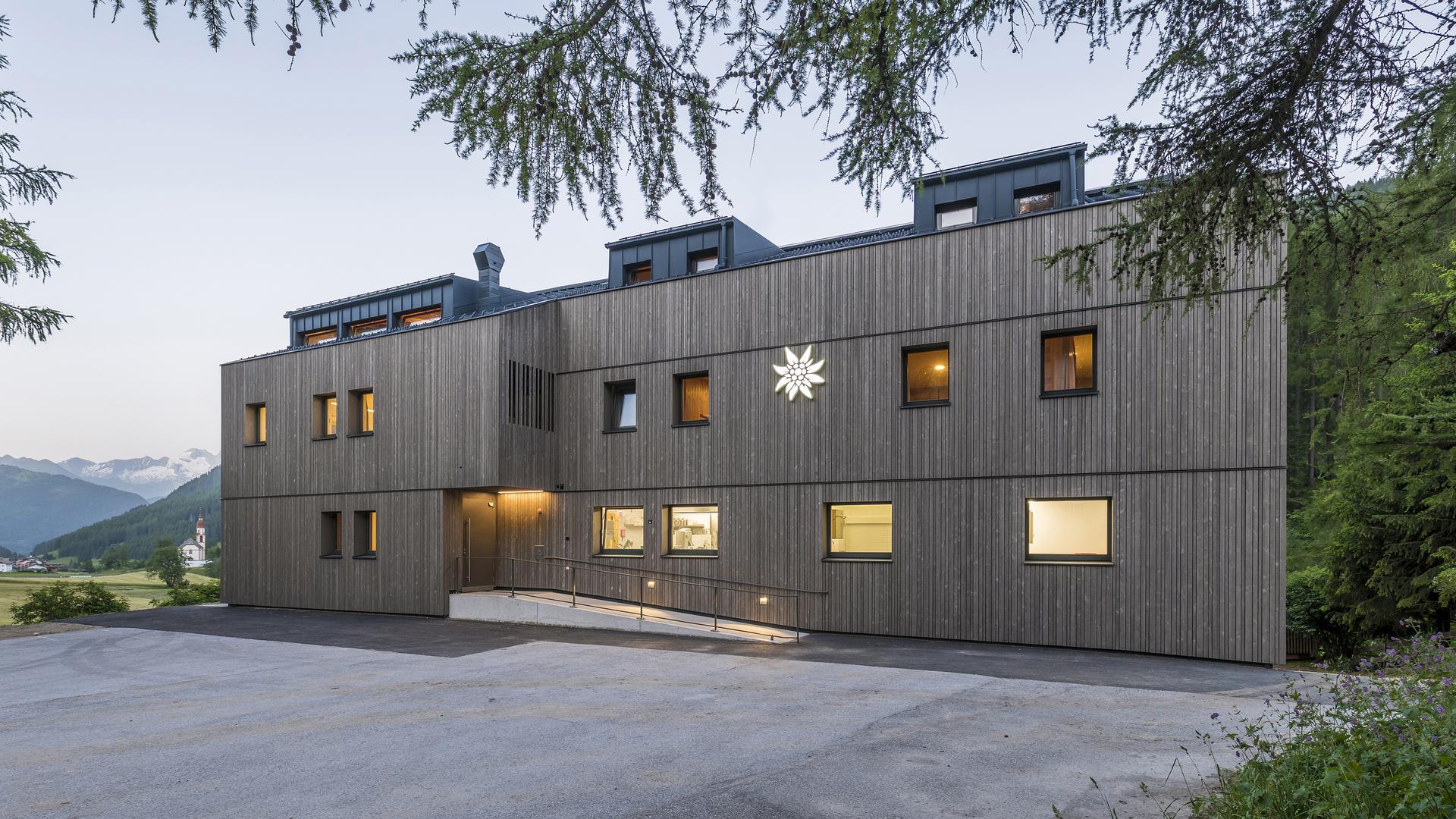 Das Jugendhaus in Obernberg ist eine sehr stimmige Sanierung, die eine angemessene Reaktion auf die alpine Lage darstellt. Im Bestand selbst wurde sensibel und reduziert reagiert. Umstrukturierungen und Eingriffe wurden dort durchgeführt, wo sie sinnvoll und notwendig waren, sei es zur Aufwertung der internen Abläufe oder zur Schaffung hoher Raumqualitäten in den Gemeinschaftsbereichen mit neu geschaffenen Ausblicken in die umliegende Bergwelt. Die Zimmer wurden bewusst im Ausgangszustand belassen.
