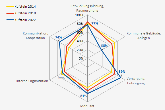 Bereits seit mehreren Jahrzehnten sorgt ein weitreichendes Fernwärmenetz für saubere Luft in der Umweltstadt Kufstein. Mit der Umstellung auf Biomasse im Jahr 2003 wird ein Großteil der in Kufstein benötigten Wärme CO2-neutral und mit lokaler Wertschöpfung zur Verfügung gestellt. Alle kommunalen Gebäude und etwa 60 % der Haushalte werden mit der Fernwärme versorgt. Mit den Begegnungszonen und der Gestaltung des öffentlichen Raums, sowie einem E-Carsharing-Angebot wurden innovative Akzente gesetzt.