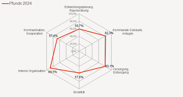 Pfunds ist 2015 ins e5-Programm wiedereingestiegen. Die Gemeinde trat bereits 1999 dem e5-Programm bei. Nach dem Jahrhunderthochwasser 2005 und den dadurch entstandenen Infrastrukturschäden rückten zwischenzeitlich dringlichere Aufgaben in den Vordergrund. Pfunds nahm die Katastrophe zum Anlass den Wiederaufbau so energieeffizient wie möglich zu gestalten. Bei der Sanierung der Gemeindegebäude wurde auf ökologische Materialien und den bestmöglichen Einsatz erneuerbarer Energien geachtet. Heute können 94 Prozent des Wärmebedarfs aus heimischen Energieschätzen bezogen werden.