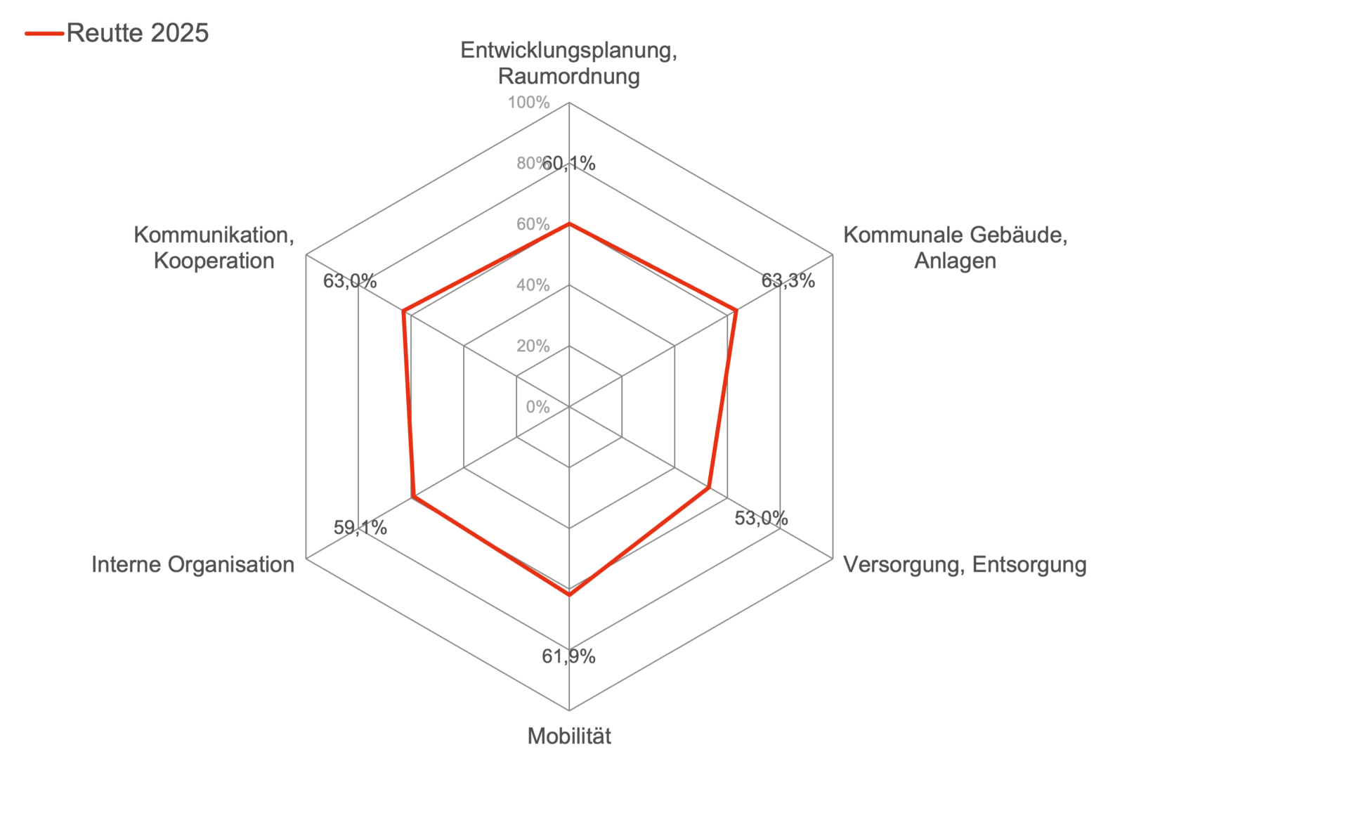 Im November 2016 ist die Marktgemeinde Reutte dem e5-Programm beigetreten. Beim Audit 2025 erhielt sie drei e’s und punktet mit der Umgestaltung des Untermarktes, wodurch das Stadtzentrum attraktiviert und eine verkehrsberuhigte Zone geschaffen wurde.