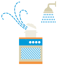 Jeder Mensch gibt etwa 1 bis 1,5 Liter Wasser pro Tag an seine Umgebung ab. Dazu kommt die Feuchtigkeit durch Kochen, Baden, Duschen, Wäschetrocknen usw. Bei einem Haushalt mit vier Personen werden auf diese Weise schnell einmal 10 bis 12 Liter Wasser in die Raumluft eingebracht.